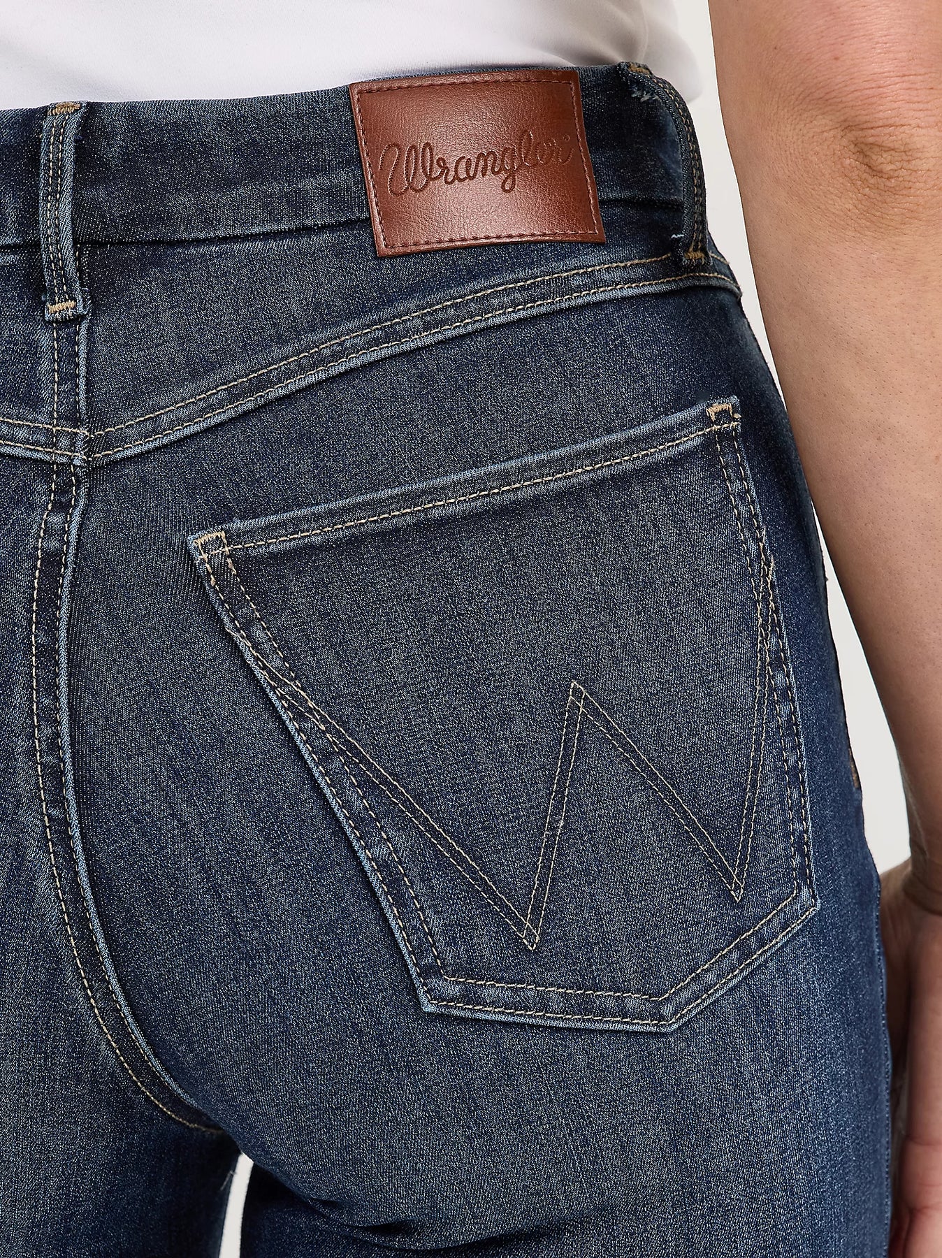 You deserve a fit that complements your every curve, which is exactly what the Women's Wrangler® Bespoke High Rise Trouser Jean was made to do. These denim trousers are crafted from a comfortable cotton blend featuring superior stretch, with innovative details specifically made to show off your shape. From the high-rise silhouette to a slim fit through the thigh and the vintage-inspired volume below the knee, these jeans will own the moment. Plus, they’re finished with our signature five-pocket styling, the ‘W’ stitching across the pack pockets, and a rope logo patch to let everybody know we’ve got your back.