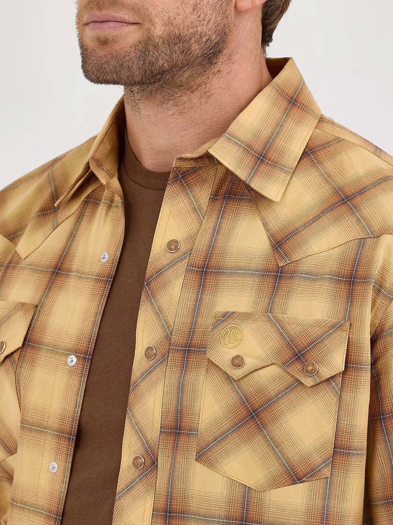 Paying tribute to our Western roots, the men's Wrangler Retro® long-sleeve sawtooth snap pocket western shirt gives the classic style you know a modern look and feel. It comes with all the same details you love, including a spread collar, pointed yokes, and two sawtooth snap flap pockets with embroidery to add a bold element to every outfit. Plus, it features a modern fit and it's crafted from cotton for comfort and long-lasting durability, no matter how often you wear it. Wear it with a pair of Wrangler Retro bootcut jeans to complete the look for any occasion.